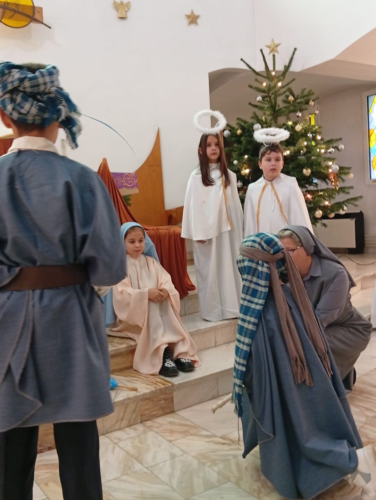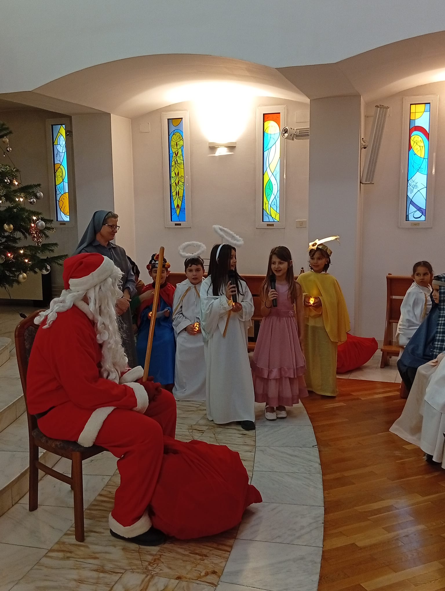 Serbarea de Crăciun a copiilor de la centrul de zi ,,Sf. Alois Scrosoppi” a avut loc în capela Surorilor Provindenţei. Cei care au luat parte la serbarea noastră s-au lăsat învăluiţi de misterul Naşterii pruncului Isus pe care l-am prezentat cu ajutorul scenetei noastre.