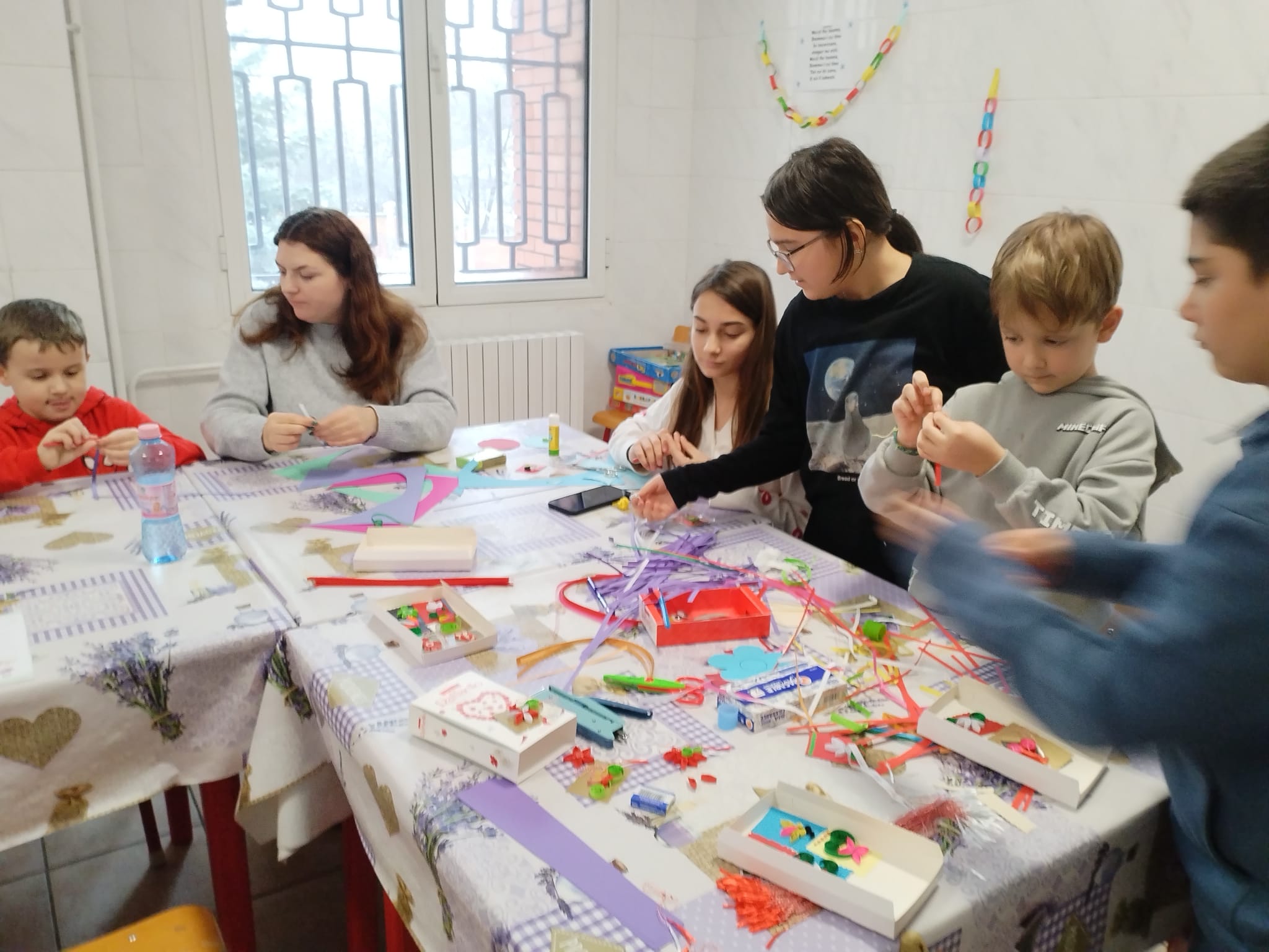 În apropierea primăverii, centrul de zi s-a umplut de culoare, delicateţe şi entuziasm prin organizarea atelierelor de mărţişoare realizate prin tehnica quilling şi pyssla. Activitatea a oferit beneficiarilor ocazia de a-şi exprima creativitatea şi de a confecţiona simboluri tradiţionale ale primăverii, dăruite apoi cu bucuire celor dragi. Tehnica quilling, care presupune rularea şi modelarea fâşiilor subţiri de hârtie a fost o provocare plăcută pentru participant. Cu răbdare şi multă atenţie aceştia au realizat flori, inimioare, fluturaşi coloraţi şi diverse animăluţe.