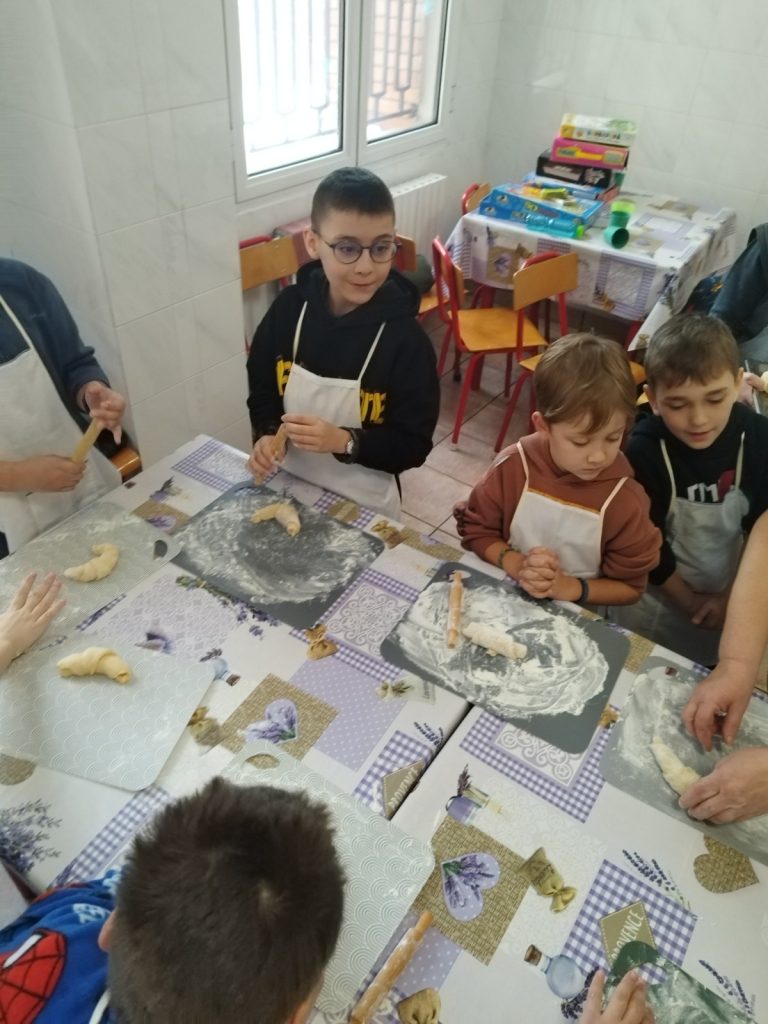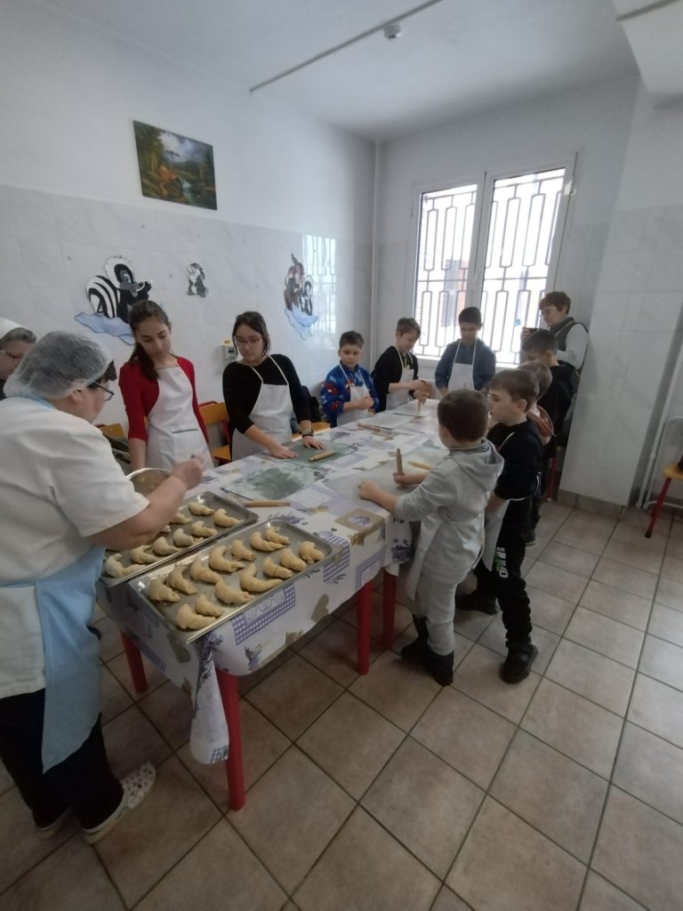 Copiii au participat la un atelier culinar unde au avut ca sarcină să facă cornuri umplute cu rahat. Fiecare a primit instrumentele necesare pentru a întinde aluatul pentru cornuri, iar mai apoi au ornat cu rahat. Pe parcursul întregului proces copiii au fost îndrumaţi şi supravegheaţi de educatori împreună cu doamna bucătăreasă. După finalizarea procesului copiii au putut să guste din cornurile preparate de ei descoperind că sunt foarte gustoase şi fragede.